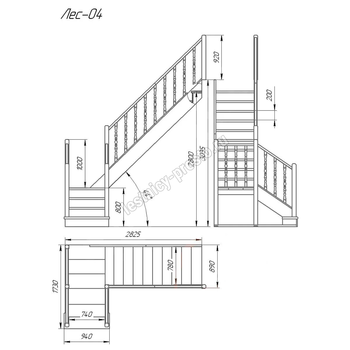 Деревянная межэтажная лестница ЛЕС-04, Сосна