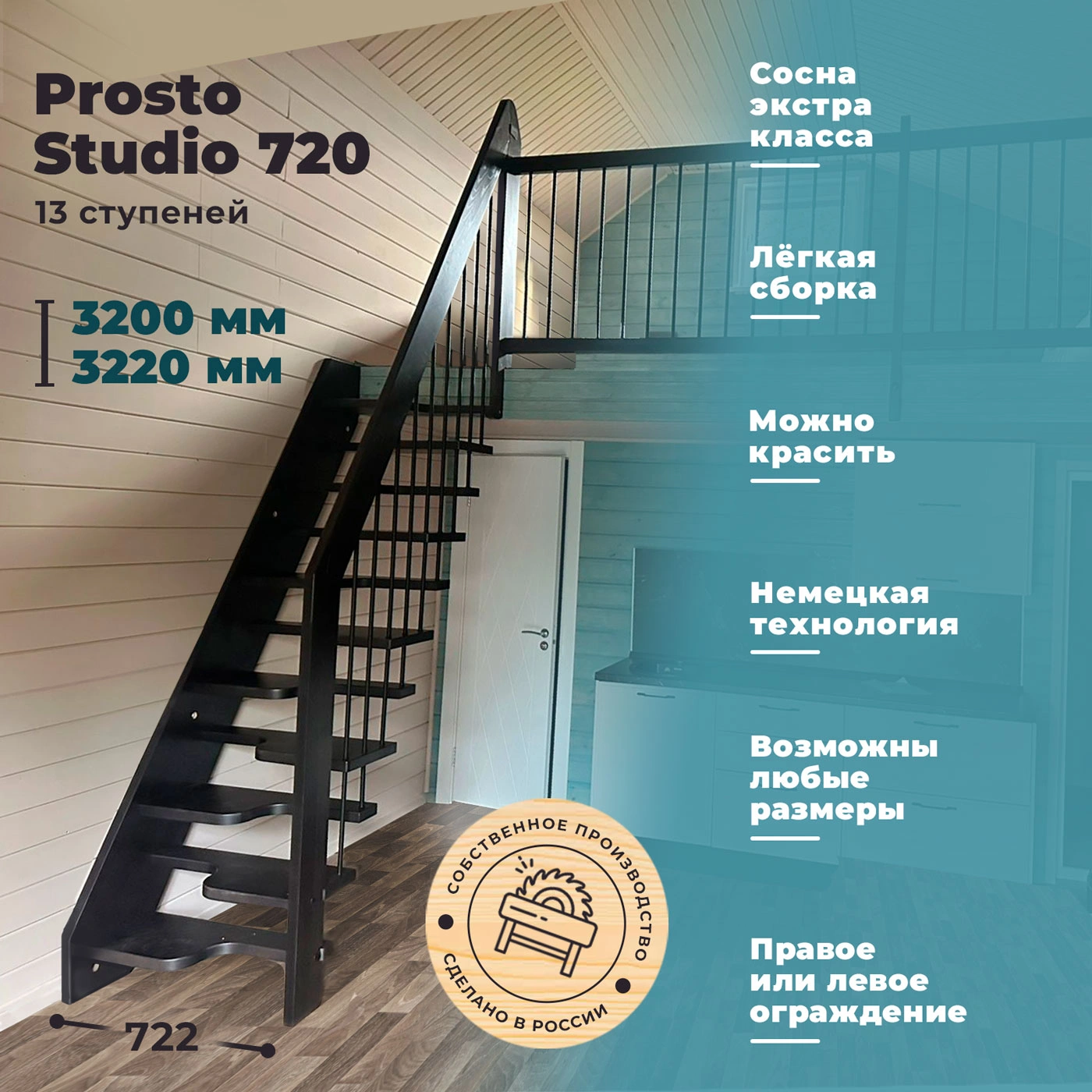 Консольная деревянная лестница Prosto Studio 720 гусиный шаг, h320-322 см (13 ступеней) из сосны