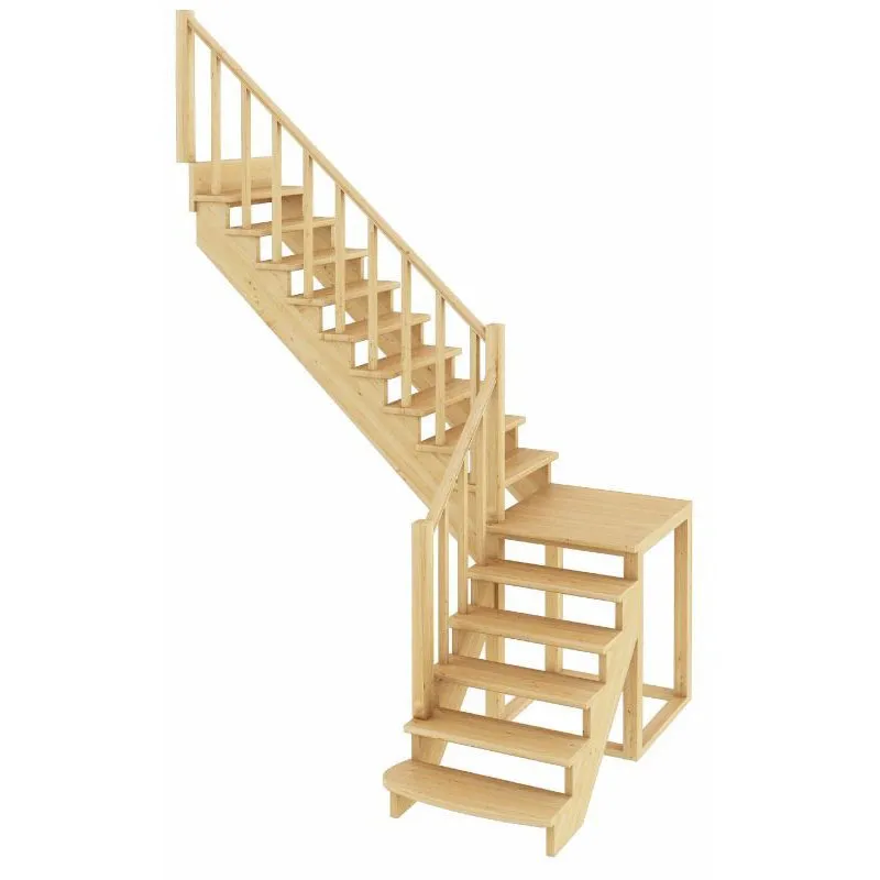 Базовый комплект включает в себя деревянные элементы лестницы и ограждения без какого-либо покрытия