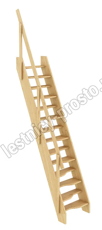 Базовый комплект включает в себя деревянные элементы лестницы и ограждения без какого-либо покрытия.