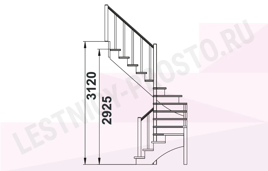Схема лестницы К-003М/4 с поворотом налево