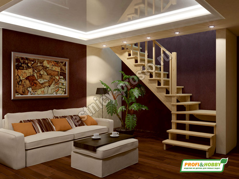 Ступени и поручень лестинцы изготовлены из дуба, остальные элементы из сосны.