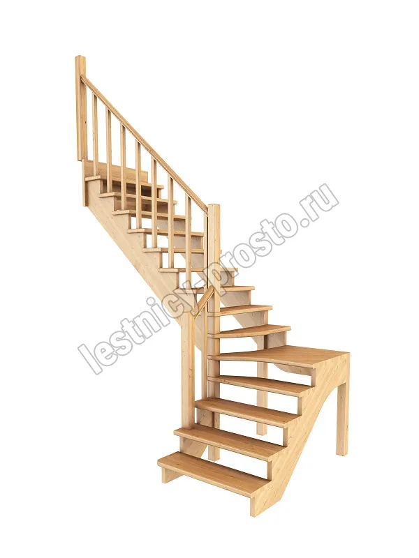 Базовый комплект включает в себя деревянные элементы лестницы и ограждения без какого-либо покрытия.