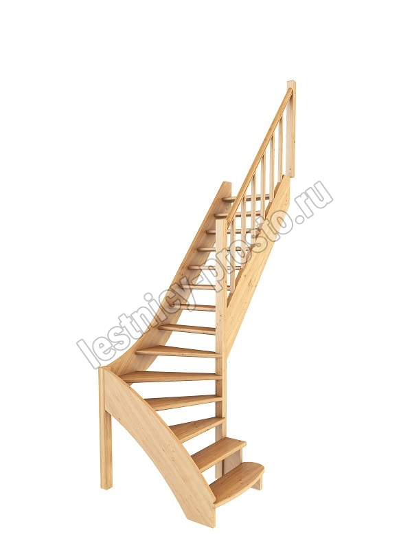 Базовый комплект включает в себя деревянные элементы лестницы и ограждения без какого-либо покрытия.