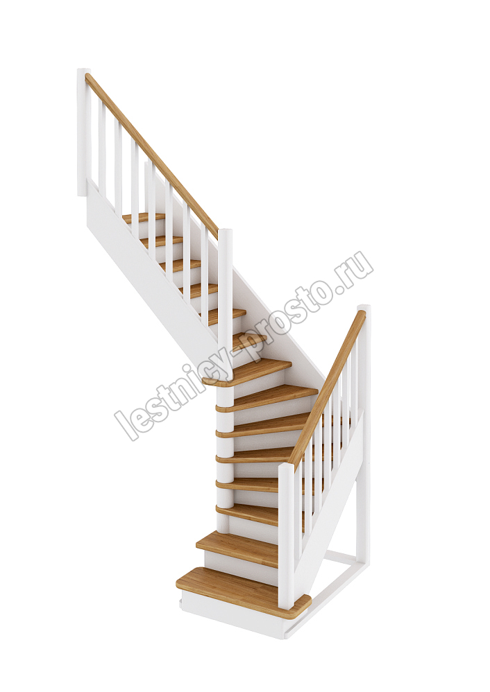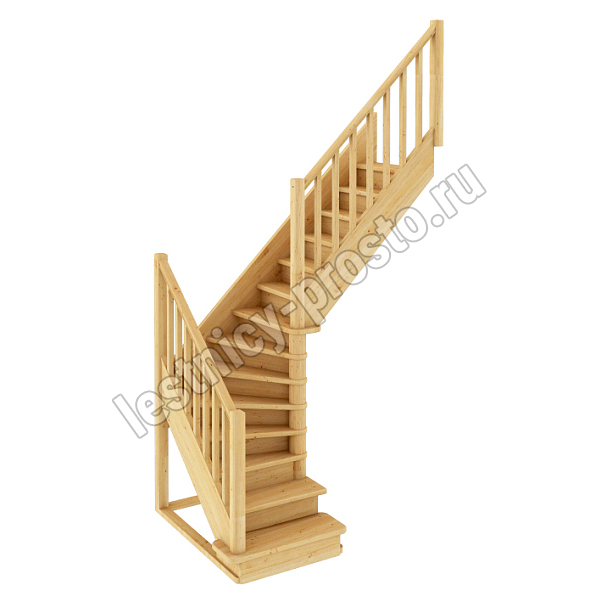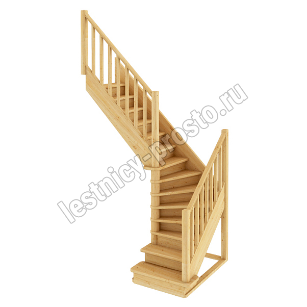 Базовый комплект включает в себя деревянные элементы лестницы с подступёнками и ограждение без какого-либо покрытия.