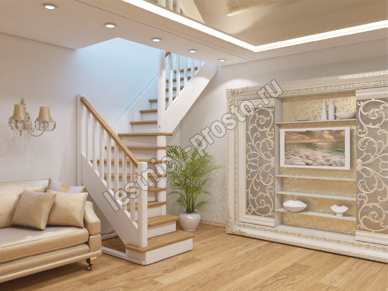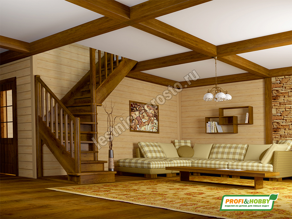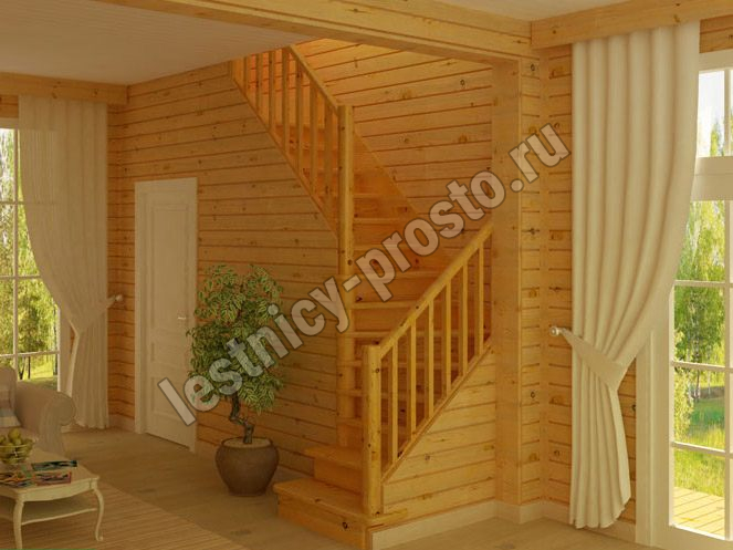 Ступени и поручень лестницы изготовлены из ясеня, остальные элементы из сосны.