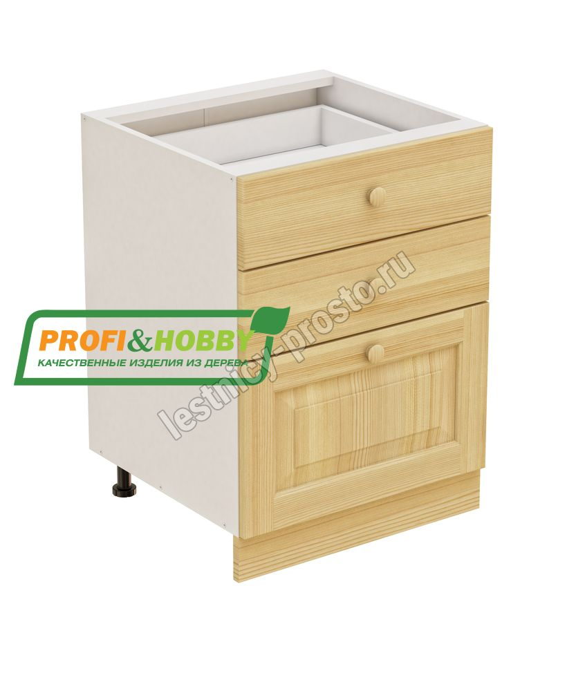 Тумба 3 ящика 600х530х720 + фасад сосна бесцветный акриловый лак