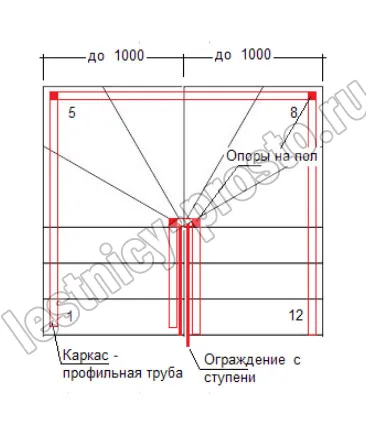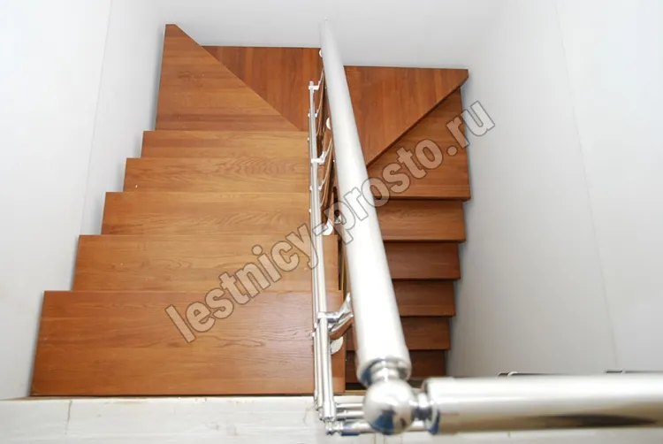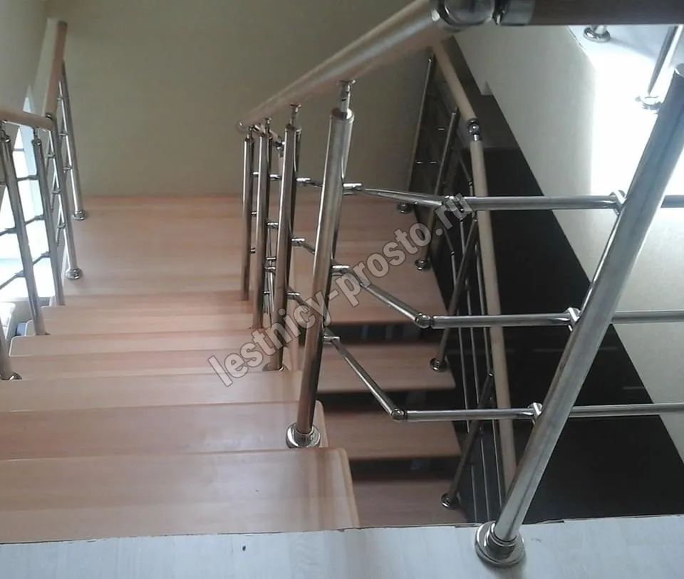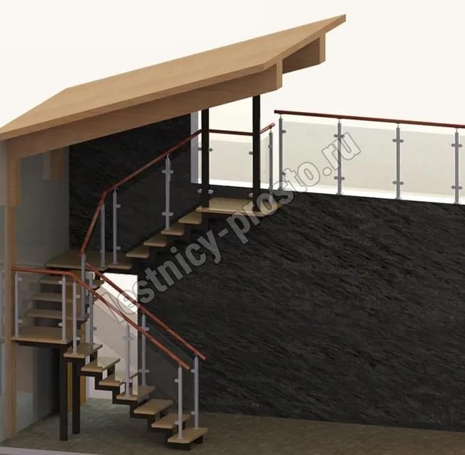 Основой лестницы Prosto Double 50×100 служит усиленный двойной металлический каркас из профильной трубы 50×100 мм (включая 4 опоры на пол под поворотом), который обеспечивает надёжную прочность конструкции и современный актуальный дизайн. Данный вариант лестницы предполагает поворот на 180° через забежные ступени. Под заказ возможно изготовление каркаса под поворотную площадку.