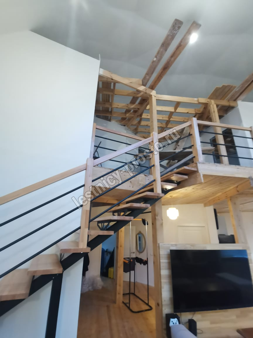 Поворот на 90° реализован посредством площадки, высота поворота определяется параметрами вашего помещения и размерами проёма.