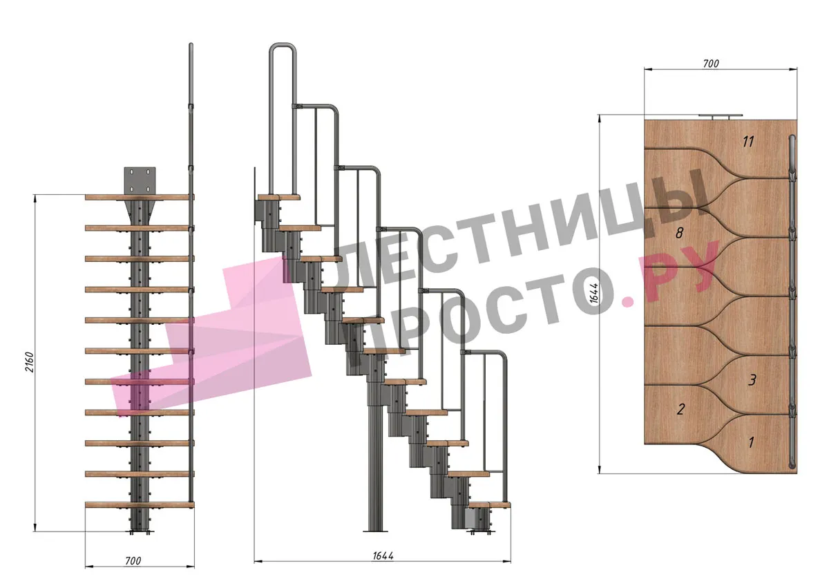 Высота лестницы 1980 - 2880 (11 ступеней) мм