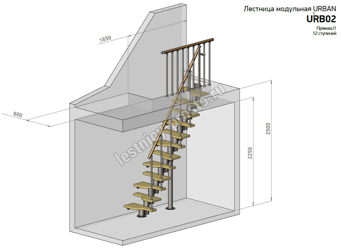 Высота лестницы 2160 - 3120 (12 ступеней) мм