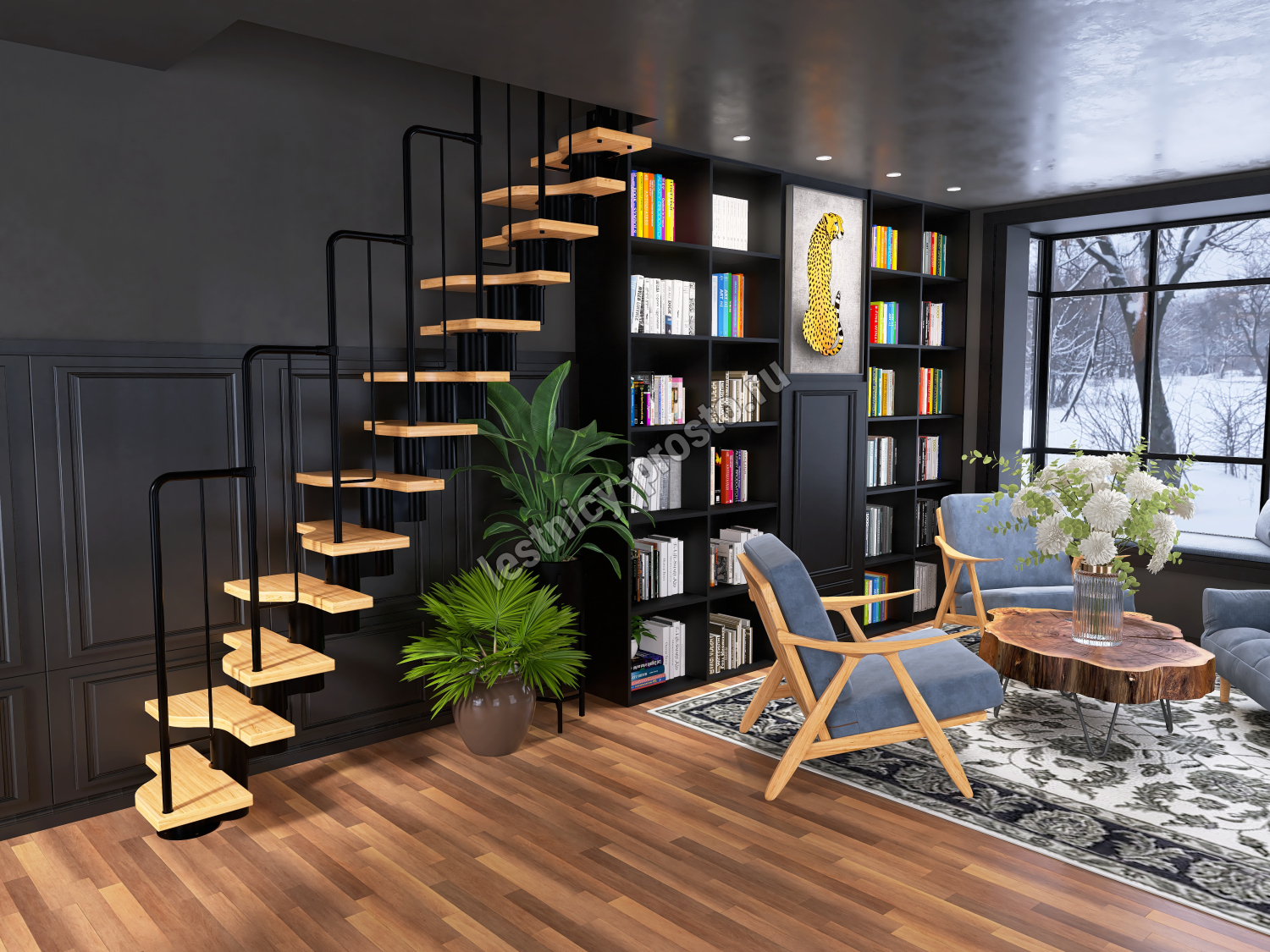 Лестница Prosto Urban Black гусиный шаг 600 мм, h198-288 см (11 ступеней)