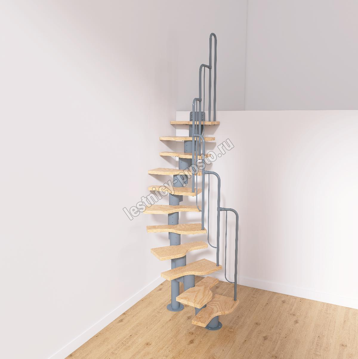 | Лестница Prosto Urban Grey г-образная гусиный шаг 600 мм, h198-288 см (11 ступеней) |