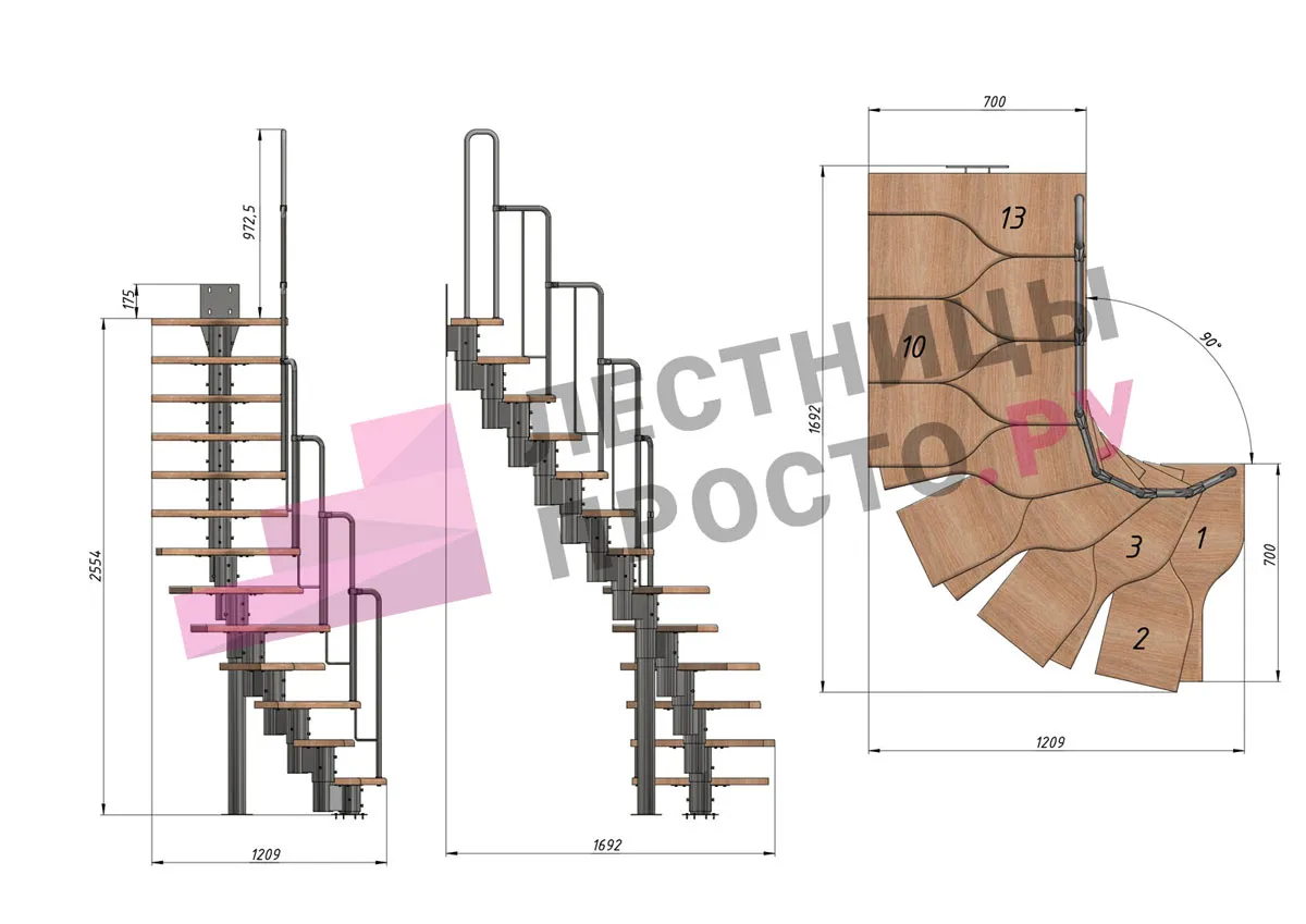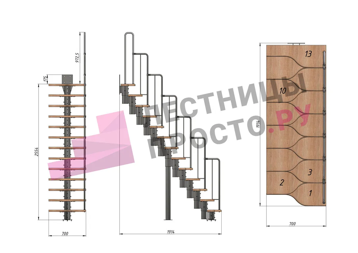 Высота лестницы 2340 - 3360 (13 ступеней) мм