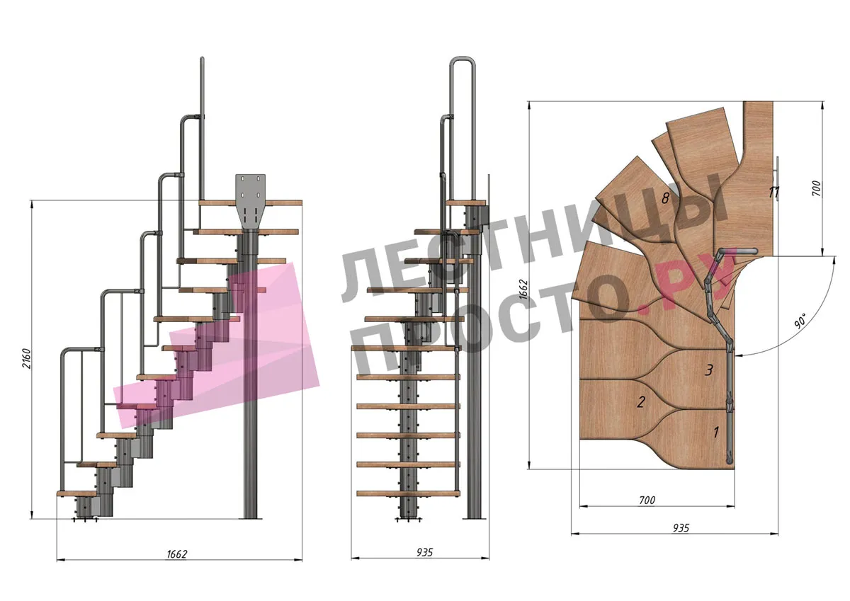 соответствует картинке, но вы не ограничены в его выборе. Лестницу можно приобрести и без ограждения, и с любым другим. Устанавливать на такую лестницу можно почти всё, начиная от классических деревянных балясин и заканчивая эксклюзивными коваными изделиями.
