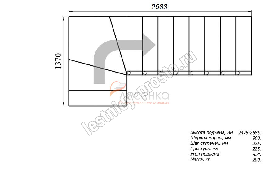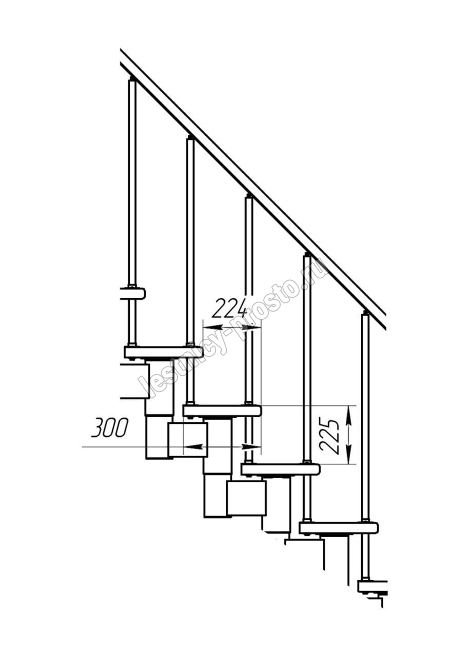 Модульная лестница Фаворит 225 2475-2585, Серый, Лиственница, Крашеная
