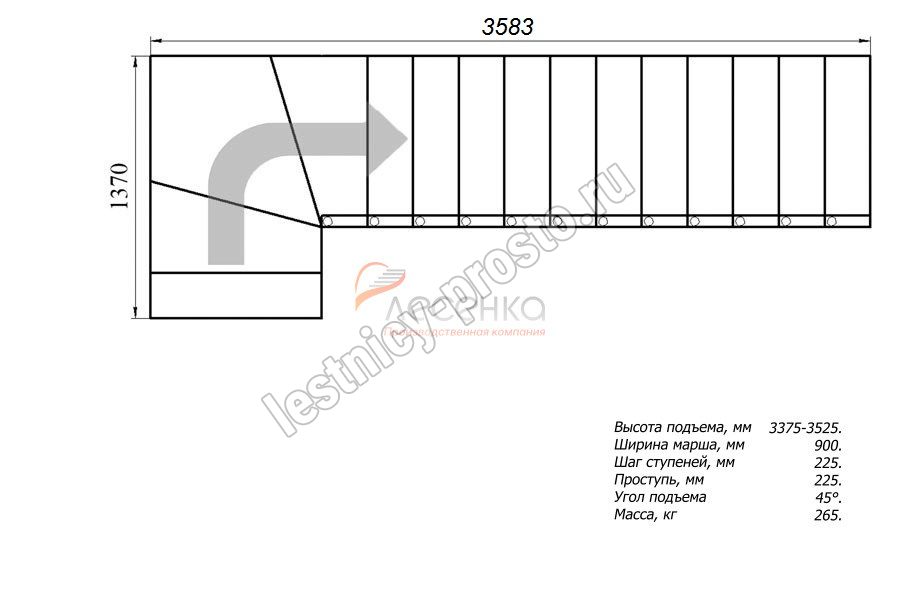 Модульная лестница Фаворит 225 3375-3525, Белый, Сосна, Нержавеющая сталь