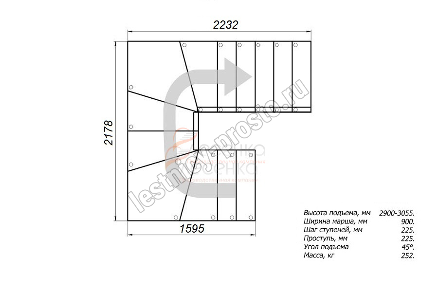 Модульная лестница Спринт 225 2925-3055, Серый, Сосна, Крашеная, Без Ступений