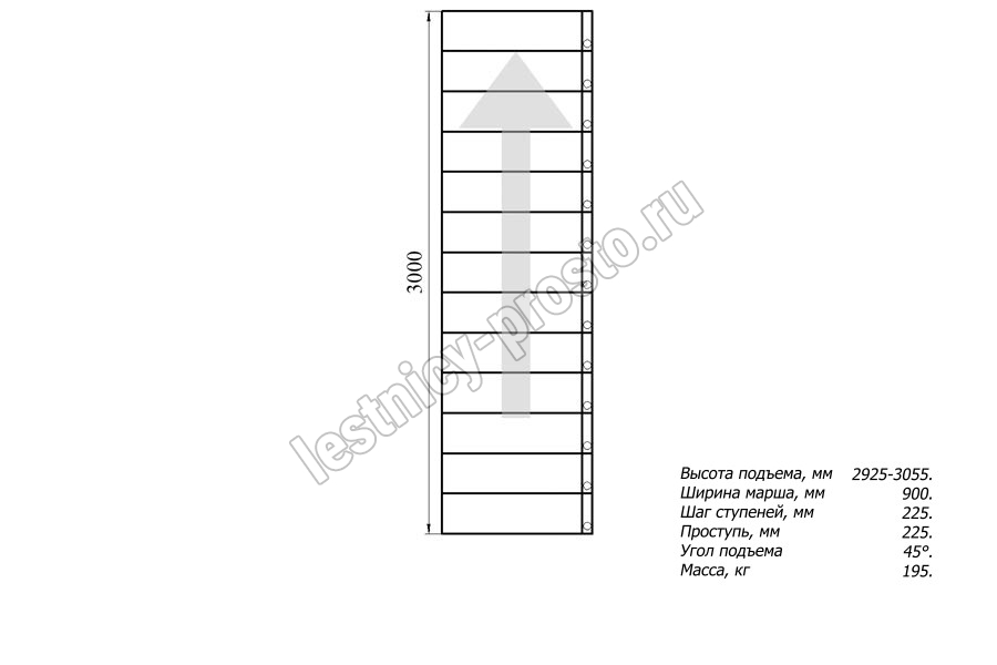 Модульная лестница Стандарт 2925-3055, Белый, Сосна, Нержавеющая сталь