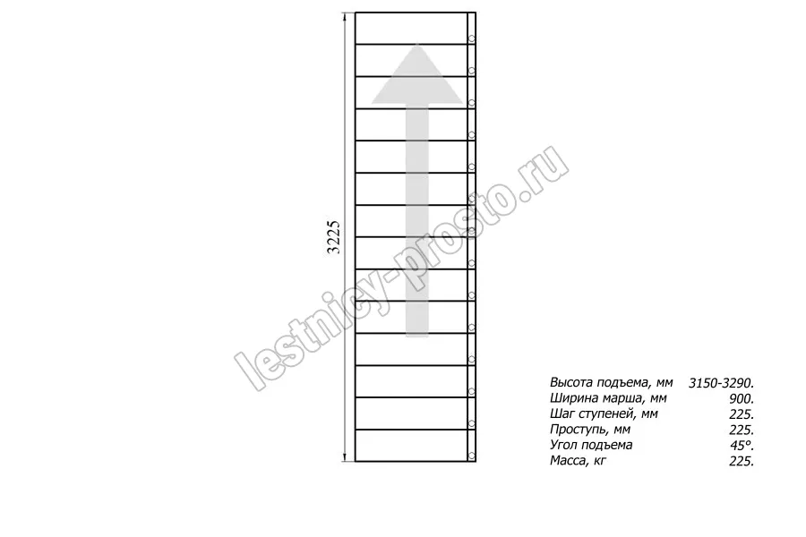 Модульная лестница Стандарт 3150-3290, Серый, Бук, Крашеная