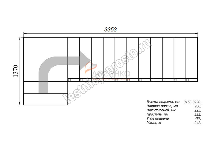 Модульная лестница Статус 225 3150-3290, Серый, Лиственница, Крашеная
