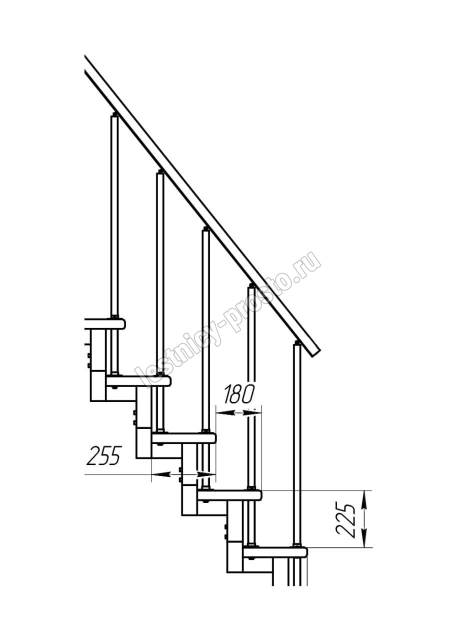 Модульная малогабаритная лестница Компакт 2250-2475, Серый, Сосна, Нержавеющая сталь