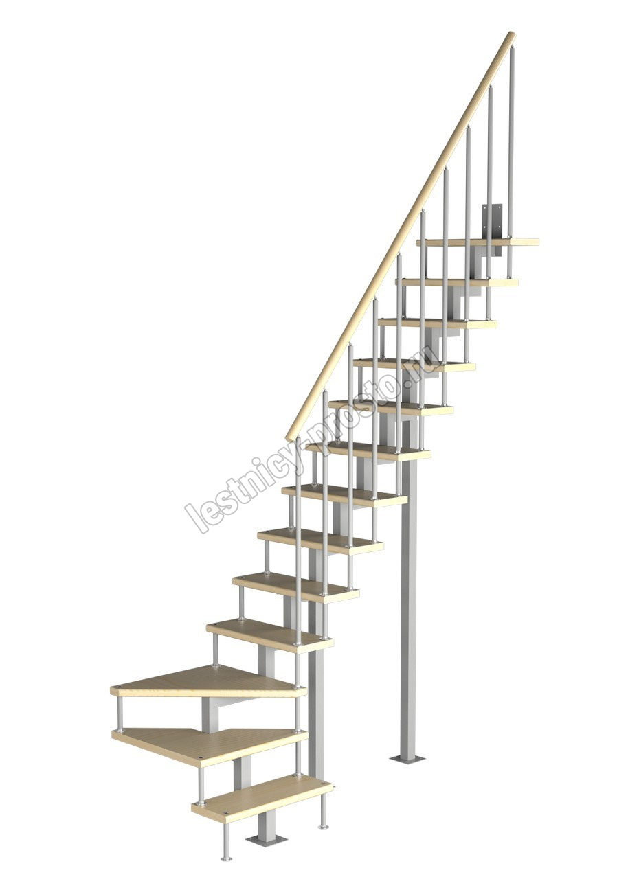 Модульная малогабаритная лестница Компакт 2925-3150, Белый, Бук, Нержавеющая сталь