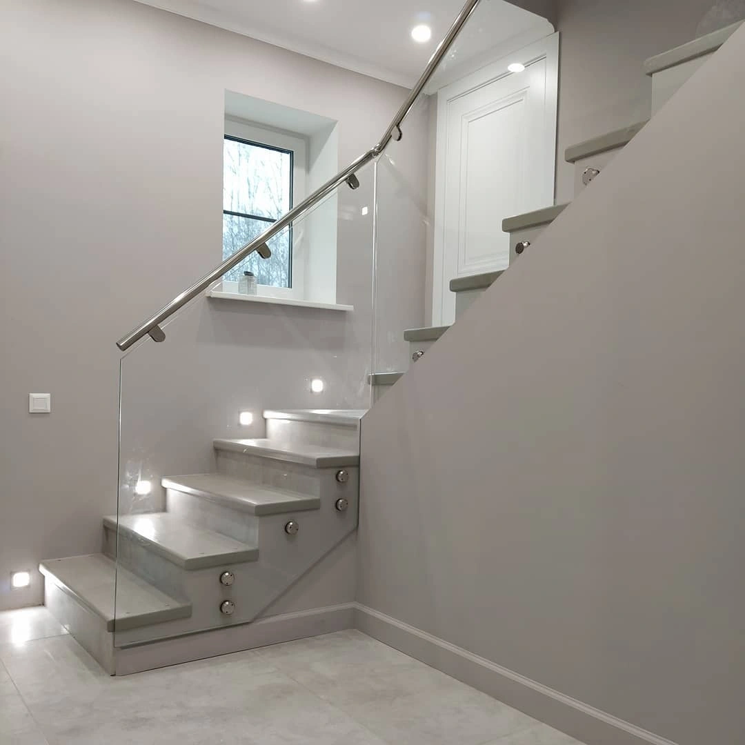 Белая лестница из стекла и бука на монокаркасе из металла КРРС-000209