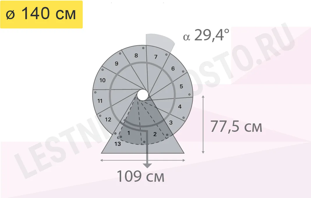 Высота лестницы регулируется при сборке в пределах 2530 - 3060 мм. С помощью дополнительных секций высоту базовой модели можно увеличить до 3770 мм.
