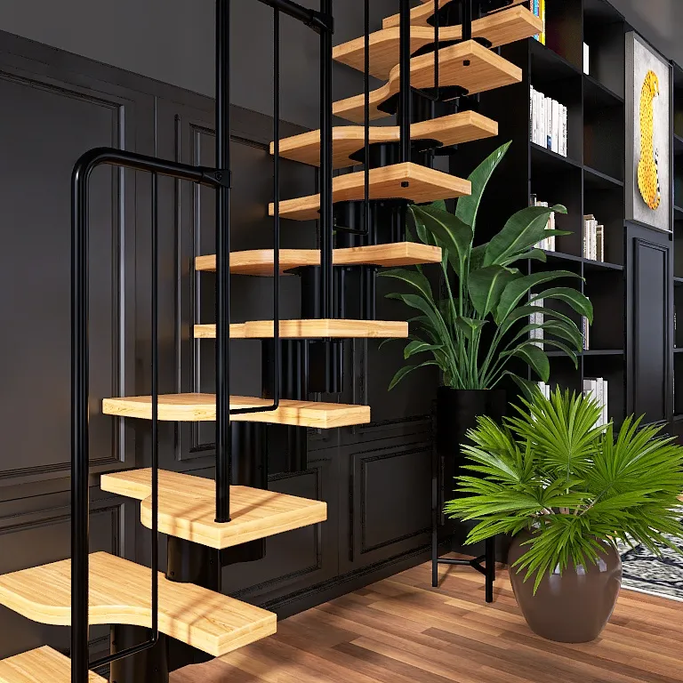 Новинка 2021 года !!! Не имеет аналогов в России по своему надежному конструктиву среди винтовых лестниц. Используемый материал - древесина шлифованная , не окрашенная и металл покрытый порошковой краской. Поручень - пластиковый, уже изогнутый. Цвет поручня в ассортименте.