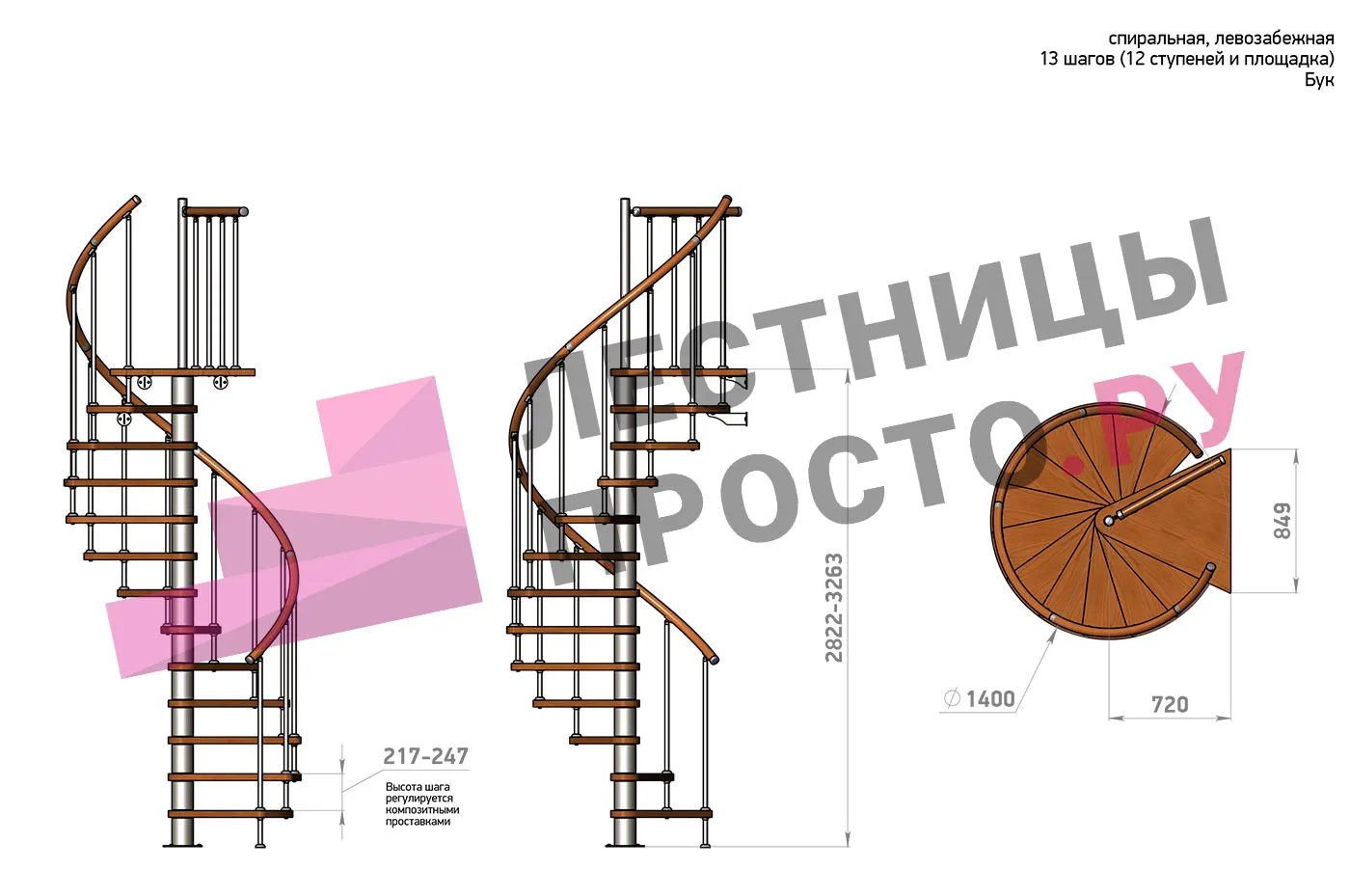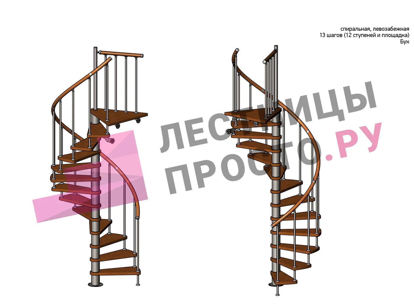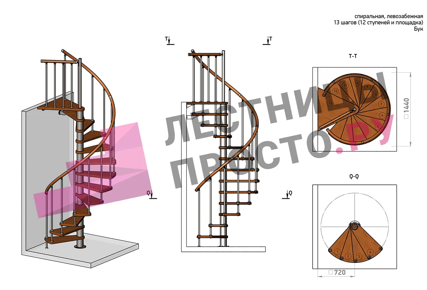 Левая, d=140см, 12 ступеней + площадка