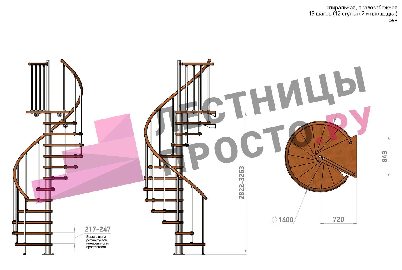 Правая, d=140см, 12 ступеней + площадка