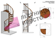 Ширина ступени между центральной колонной и поручнем ≈ 580 мм