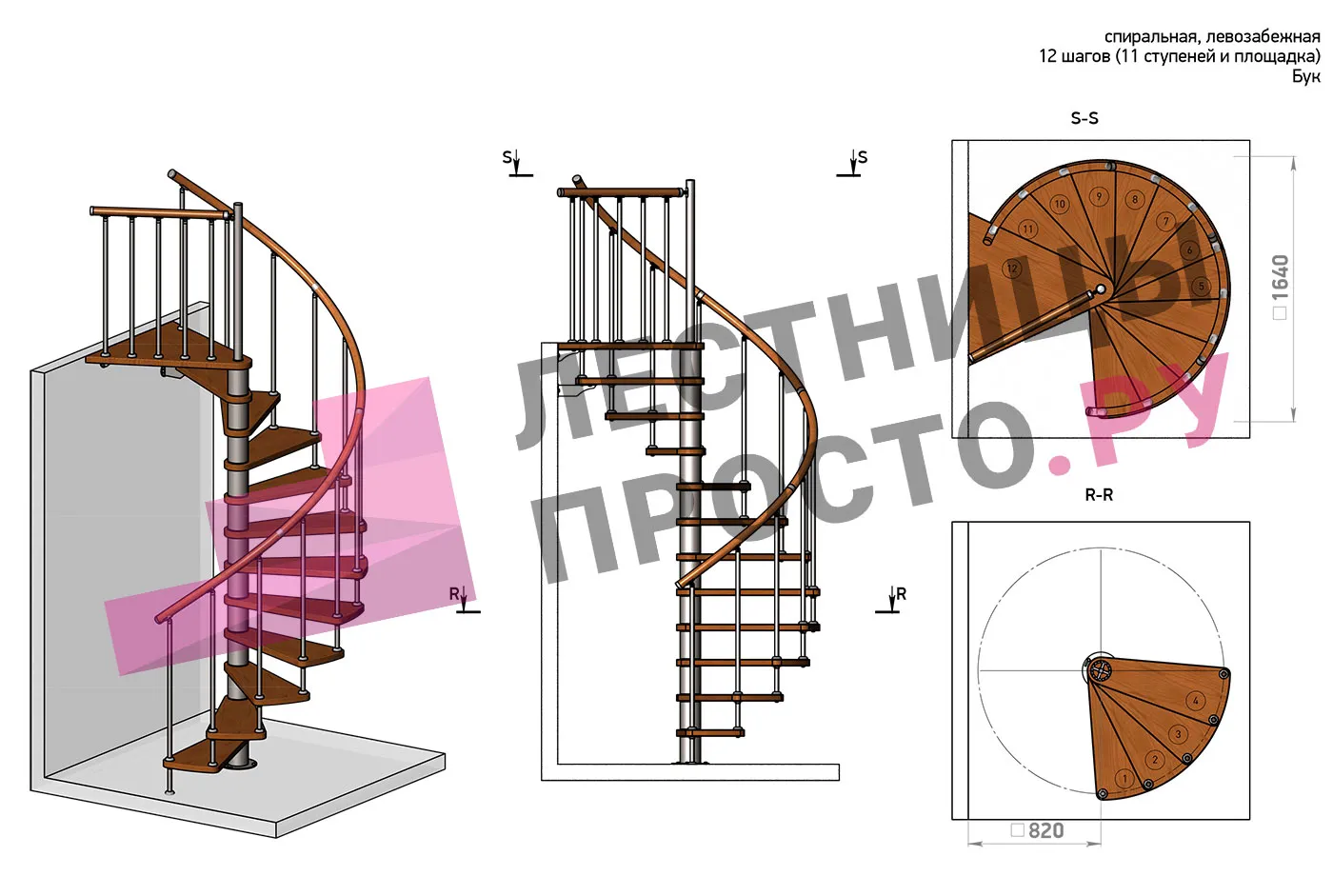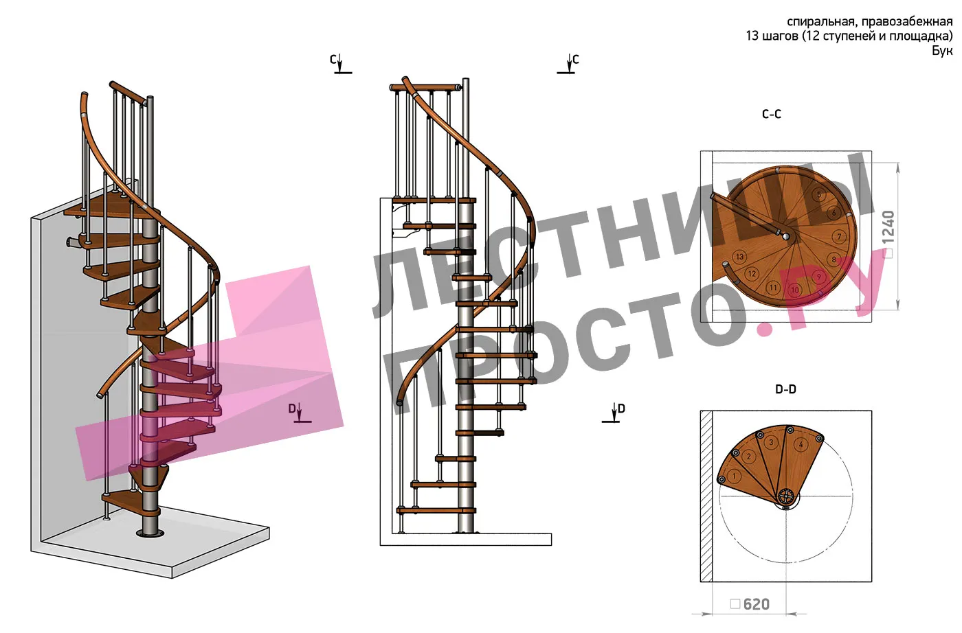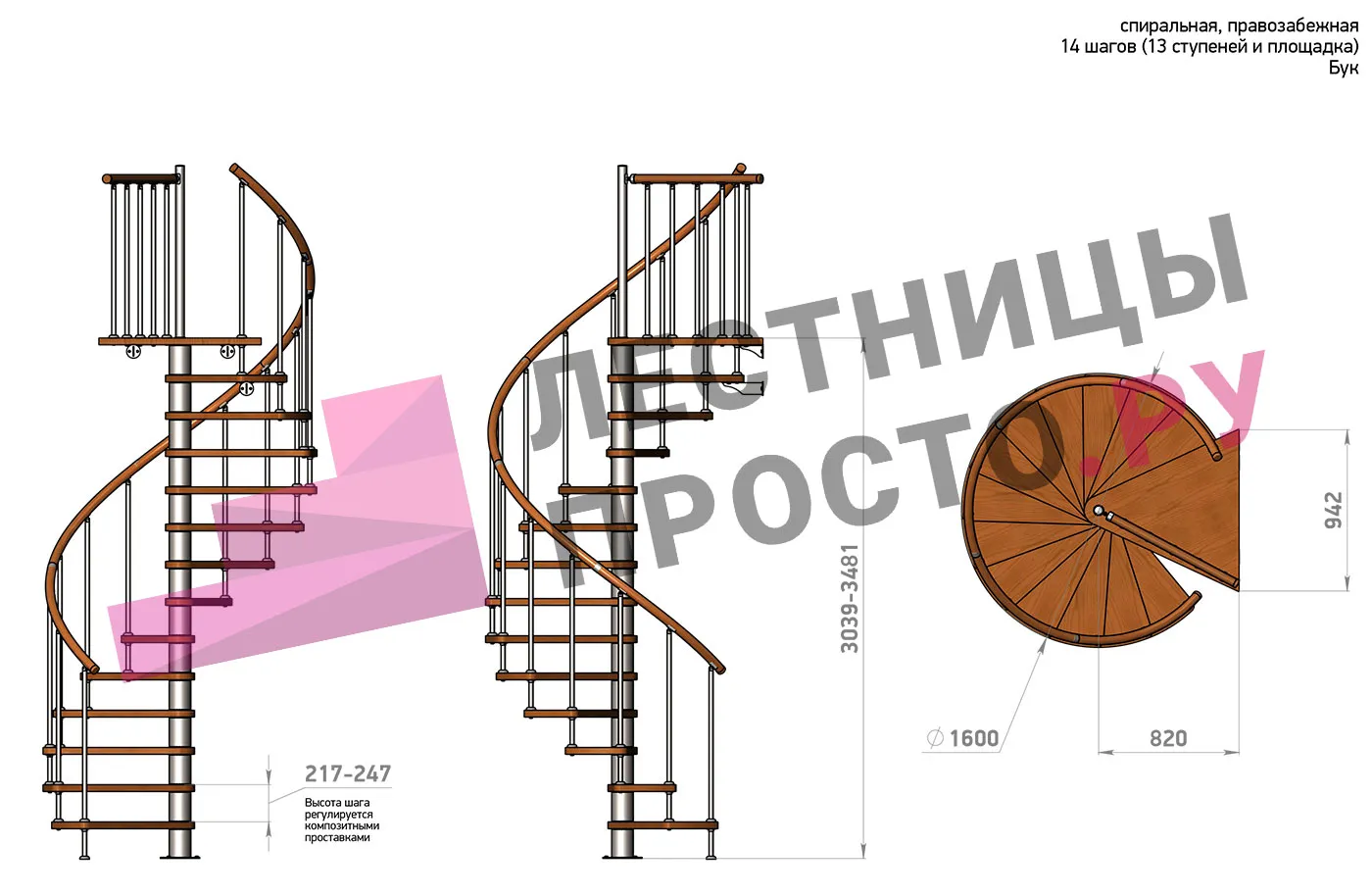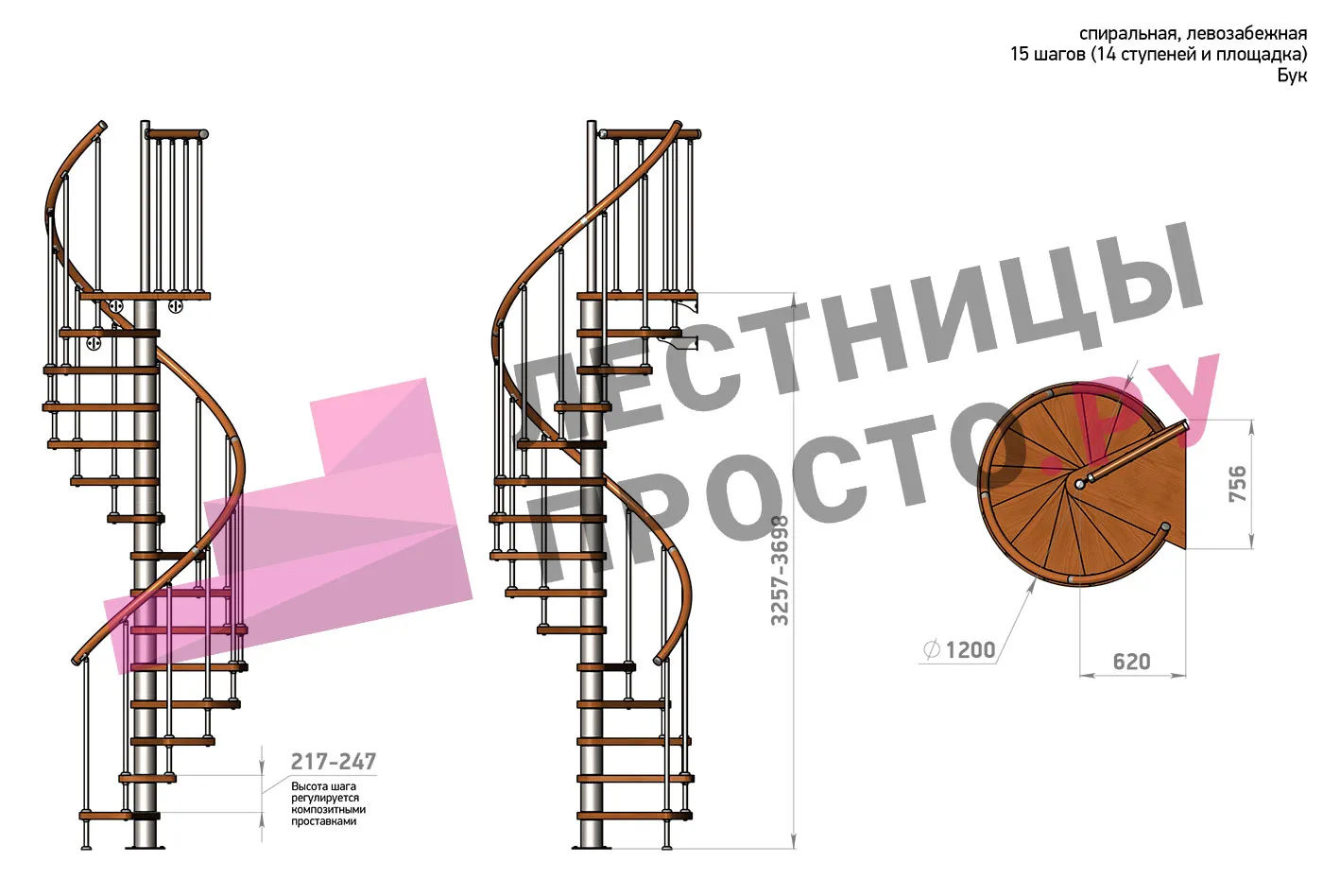 | Винтовая лестница Prosto Spiral White D160см, h325.7-369.8 см, бук |