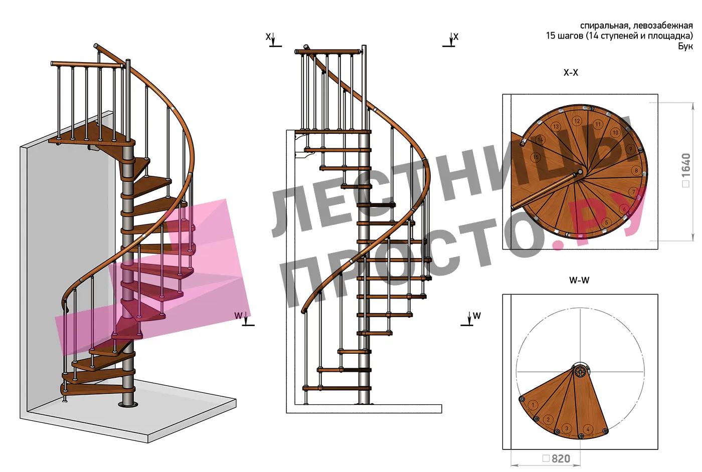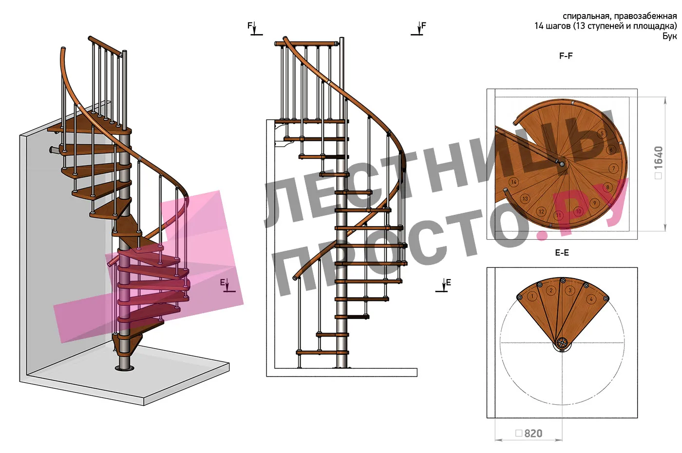 | Винтовая лестница Prosto Spiral White D160см, h303.9-348,1 см, бук |