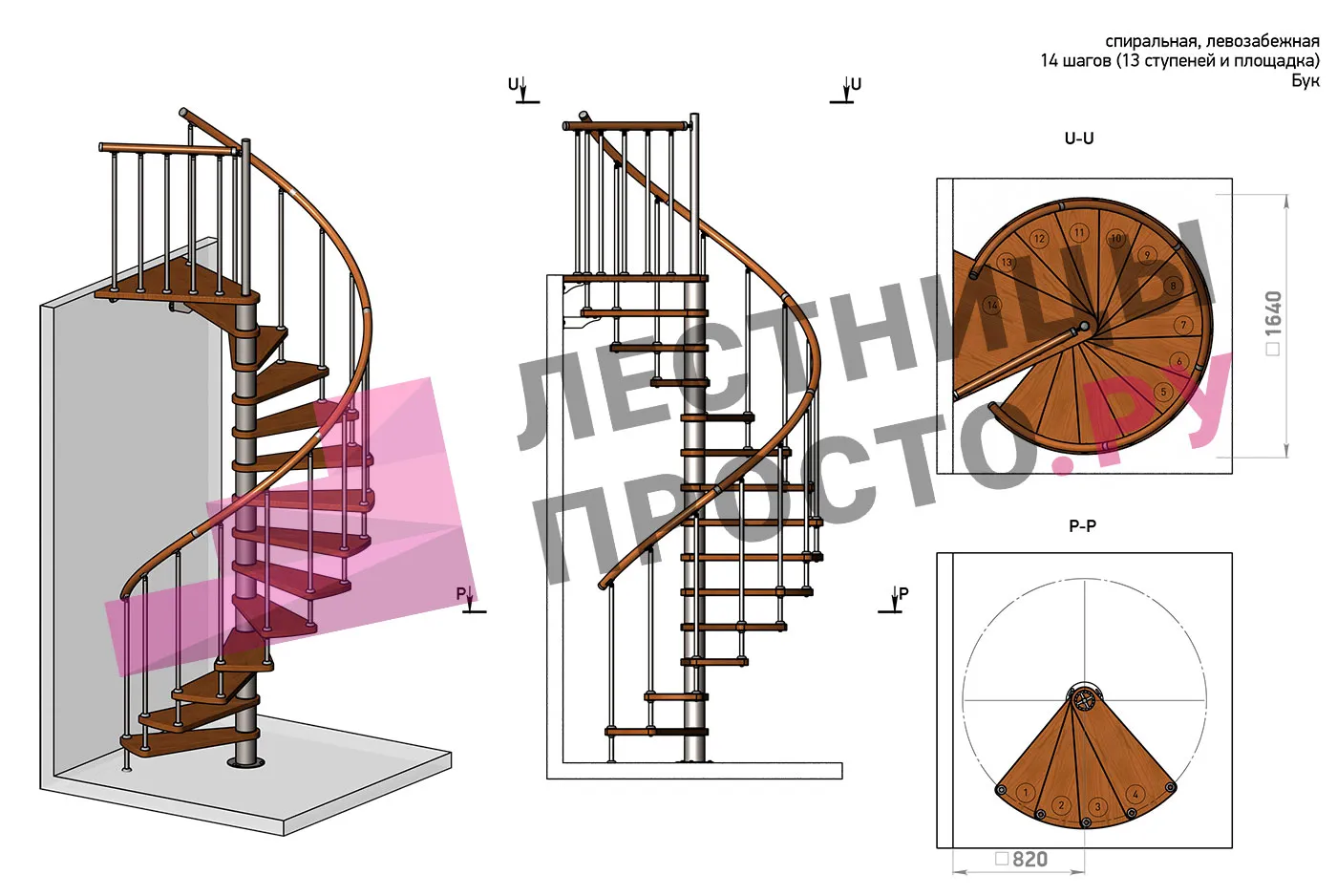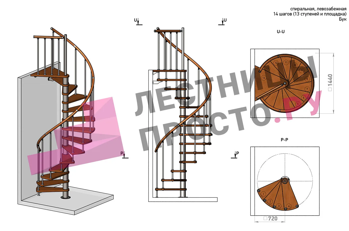 | Винтовая лестница Prosto Spiral White D140см, h303.9-348,1 см, бук |