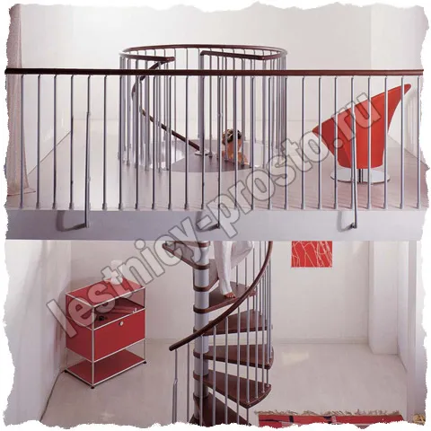 Перила состоят из стальных балясин, окрашенных в черный (RAL 9017), белый (RAL 9010) или серый (RAL 9006). Концы черные для черной лестницы и серые для серой и белой лестниц.
