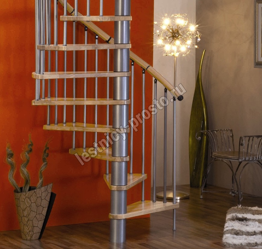 Поручень изготовлен из массива дуба в тон ступеням. Поручень и ступени лестницы покрыты износостойким защитным лаком.