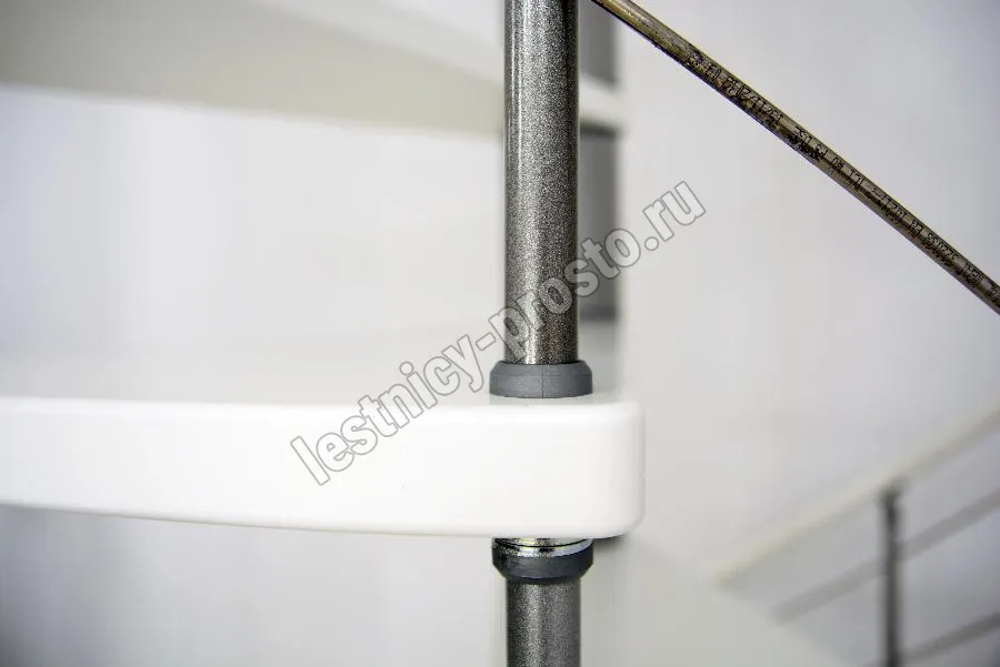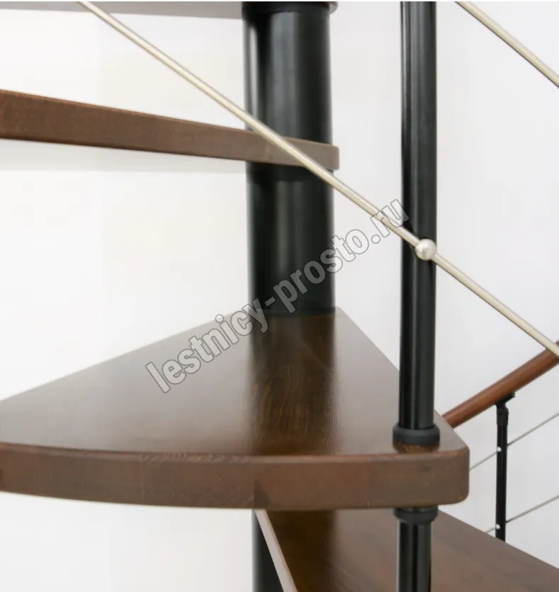 Благодаря возможности регулировать высоту шага с помощью пластиковых вставок (входят в базовый комплект), высоту лестницы можно варьировать в пределах от 2860 до 3090 мм. Кроме того, купив дополнительную секцию для этой лестницы, можно поднять высоту до 3320 мм. Ступени выполнены из сращенного дуба, покрыты износостойким твёрдым бесцветным лаком. Каркас серебристого цвета. Под заказ возможно изготовление лестницы другой расцветки.