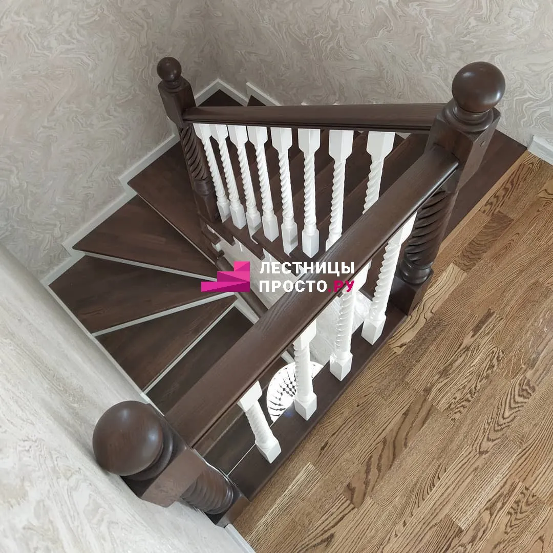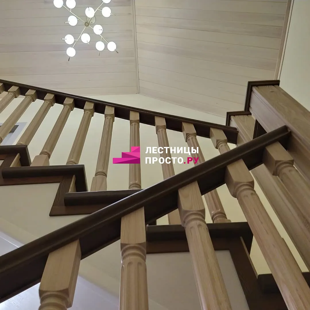 Лестница из ясеня с фигурными балясинами в частном доме по индивидуальному проекту LP-1-46
