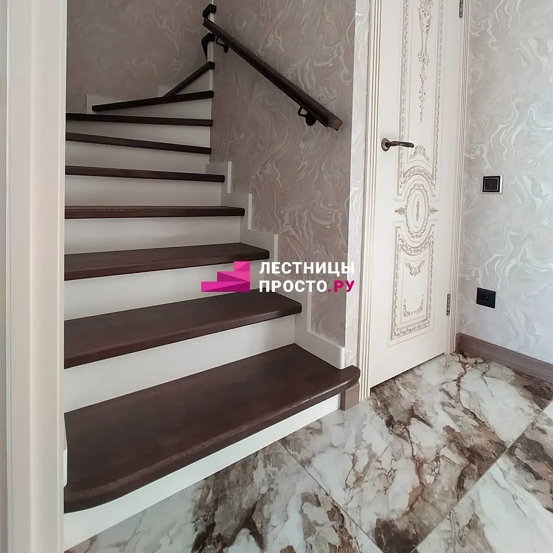 Отделка бетонной лестницы с площадкой в частном доме LP-1-16