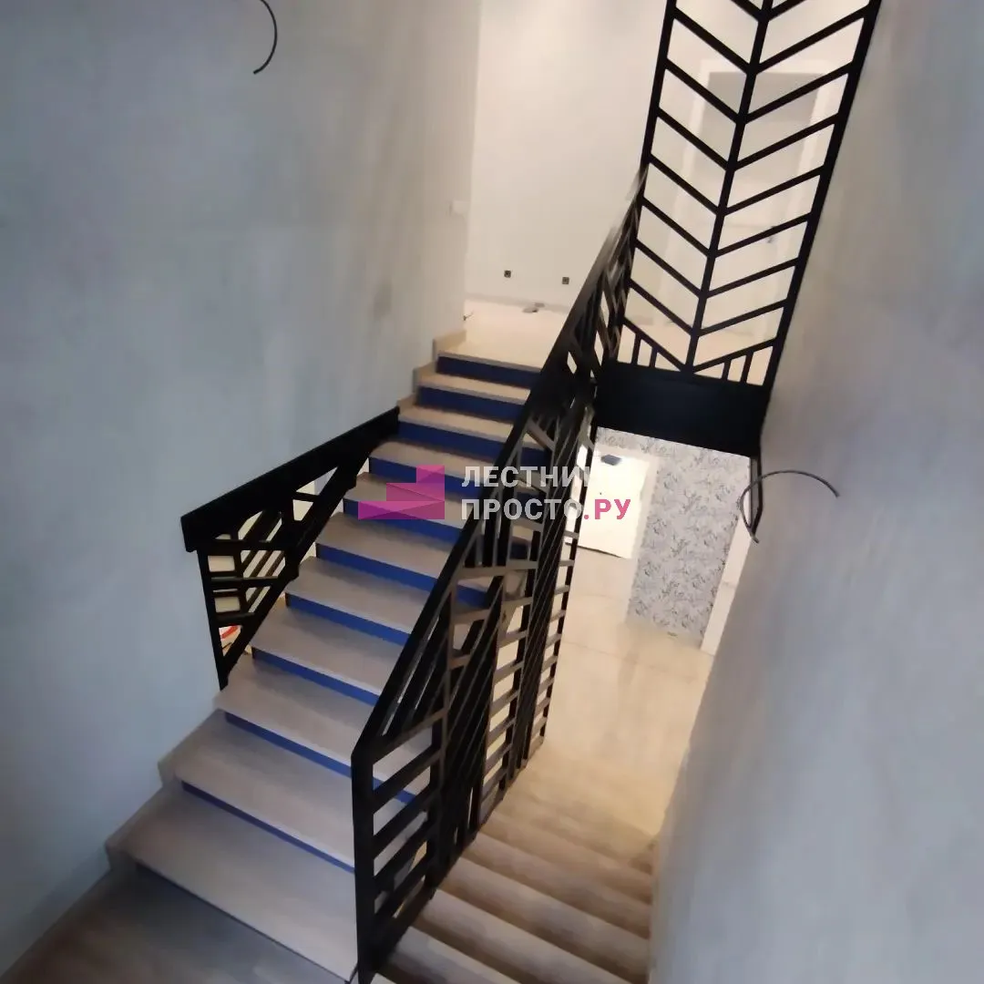 Облицовка лестницы из бетона с дизайнерским ограждением LP-1-13